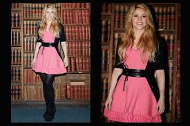 faca igual a shakira, use um vestidinho rosa, com um laco de fita ou couro como ela fez.